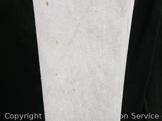 Currently Set to Red/Purple lighting, Comes with remote but remote may need to be synced, couldn't get it to change colors. 65" H x 10" x 10". Some staining discoloring on fabric.