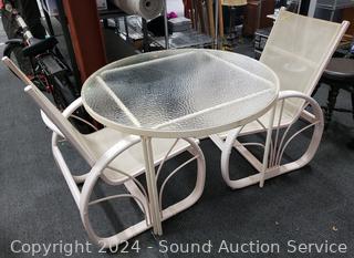 Lot #0024: Ivory Glass Top Patio Table w/2 Chairs