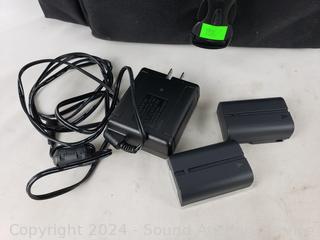 has power, powered on with power supply, no charger for batteries. Comes with owner's manual & storage bag.