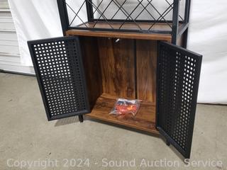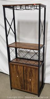 Lot #0306: Modern Steel Frame Wood Grain Finish Wine Rack/Bar