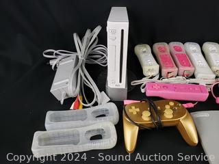 Lot #0224: Nintendo Wii w/7 Controllers, 2 Nunchucks, Sensor Bar & Switch Game