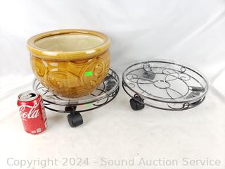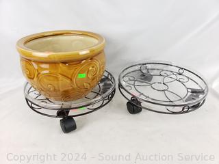 Lot #0201: Planter Pot & 2 Pot Roller Stands