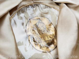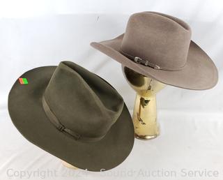 Resistol is hand creased. Don't see a size on either. Signs of wear from use.