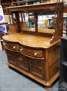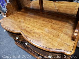 Lot #0003: Vintage Thomasville Oak Mirrored Back Buffet