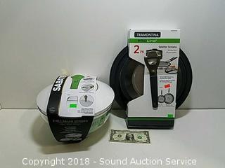 Lot #0049: 2-in-1 Salad Spinner & 2-Pack Splatter Screens