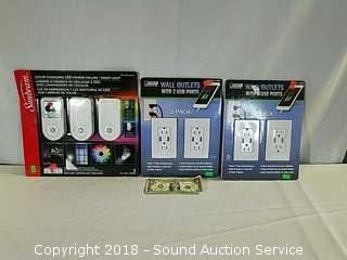 Lot #0127: (4) USB Wall Outlets & LED Night Lights