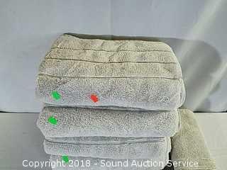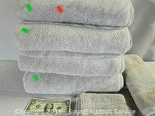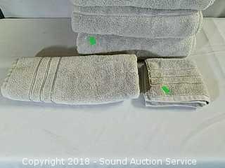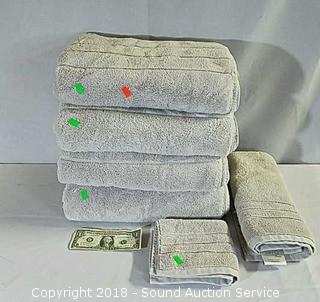 Includes: (1) washcloth, (1) hand towel, and (4) bath towels. Refer to photos for more information.