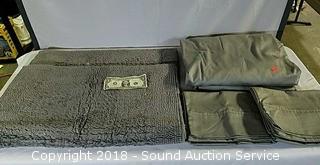 Lot #0126: Grey Twin 6PC. Sheet Set & Grey Bathroom Rug