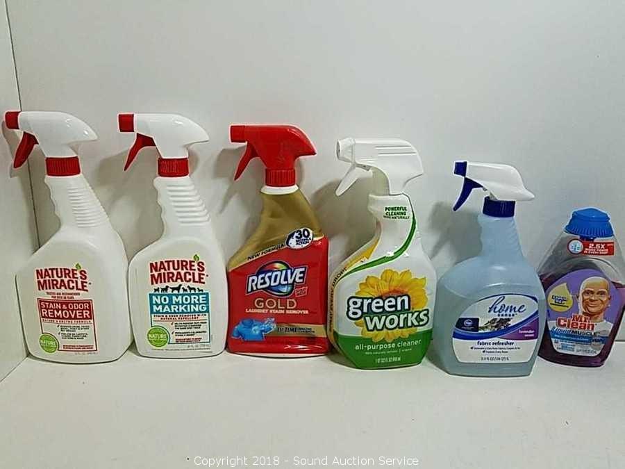 Includes: Stain remover, disinfectant spray, all purpose cleaner, glass cleaner, and more.