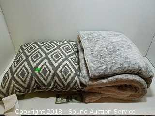 Lot #0294: Sherpa Throw Blanket & Decorative Throw Pillow