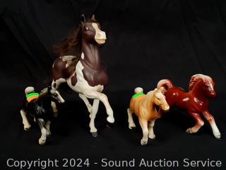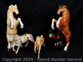 Approx. 3.75" to 10.75" tall. Don't see any major issues. 2 are marked Breyer. Refer to photos for more details.