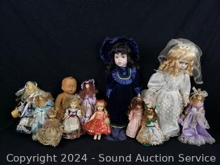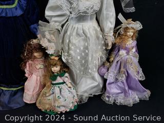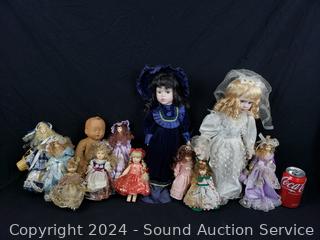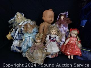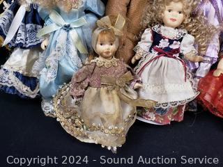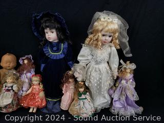 Most are porcelain. Refer to photos for more details. Approx. 6" to 14" tall. Refer to photos for more details.
