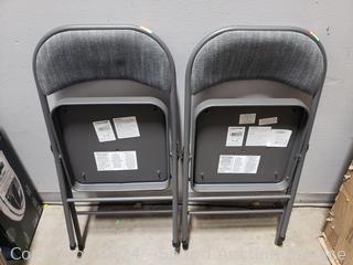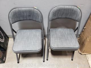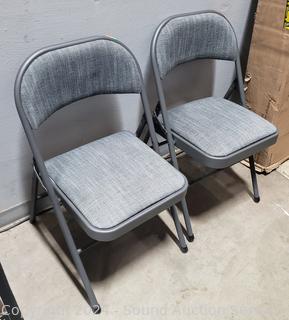 Lot #0344: 2 Maxchief Gray Upholstered Metal Folding Chairs