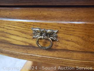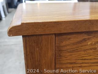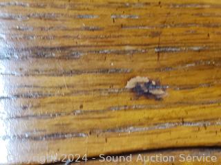 Some minor scuffs, wear to finish, overall great condition. Matches the previous lot. Approx. 26" H x 22" W x 16" D.