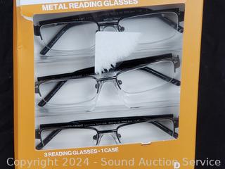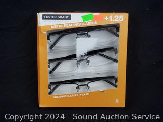 Lot #0193: 3 Foster Grant Metal +1.25 Reading Glasses w/1 Case