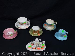 Lot #0190: 5 Fine China Teacups & Saucers & Miniature Tea Set