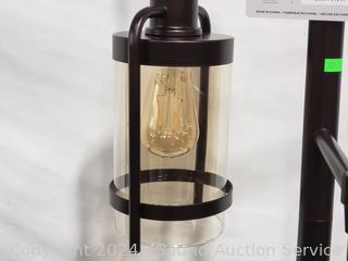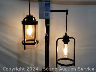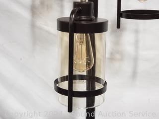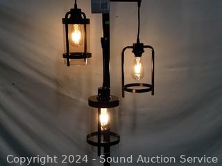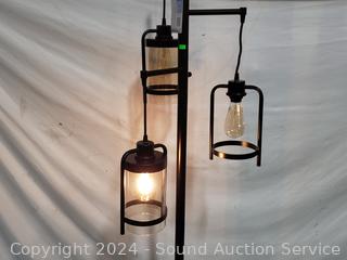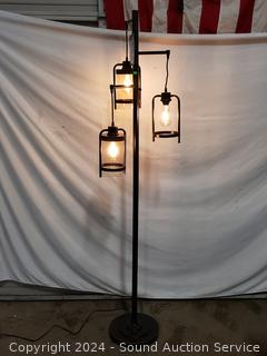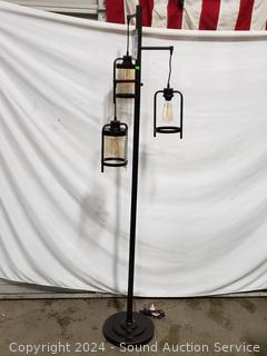One of the glass shades is missing, otherwise don't see any issues. Comes with Edison style light bulbs. Appears to be functioning as intended. 71.9" H x 16.2" Dia.