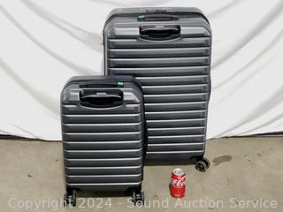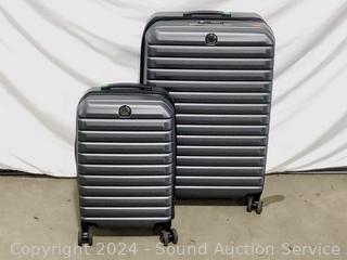 Lot #0063: 2pc Delsey Paris Gray Hard-Side Spinner Luggage