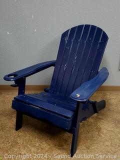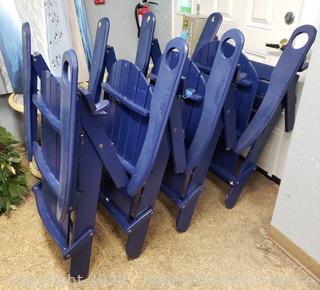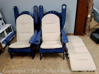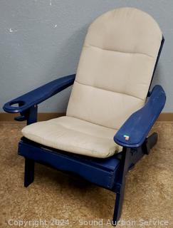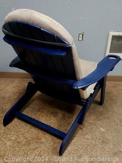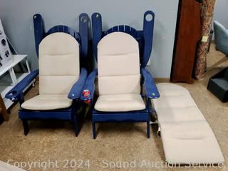 Lot #0069: 4 Blue Painted Folding Adirondak Chairs w/Ivory Chair Pads
