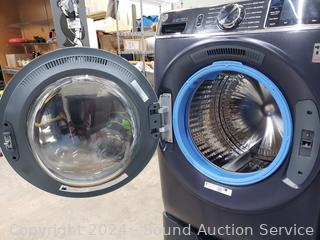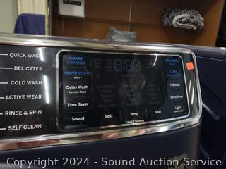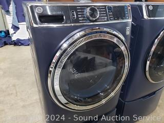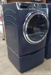 Lot #0003: Blue GE Power Steam Front Load Clothes Washer w/Pedestal