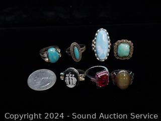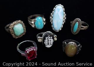 Lot #0078: 7 Sterling & Stone Set Rings S:5 & 5.5
