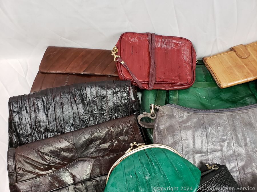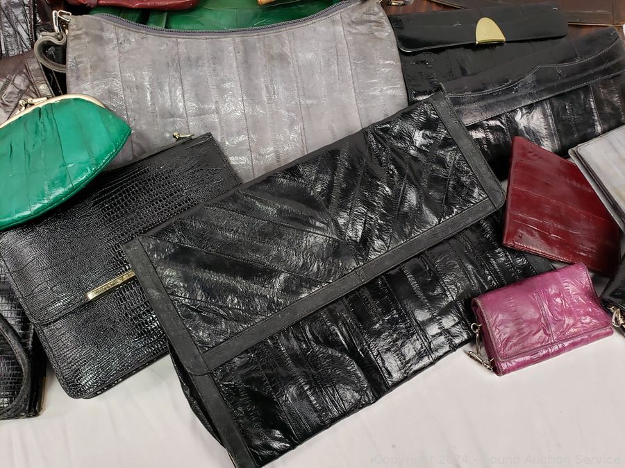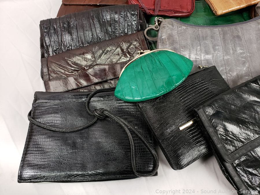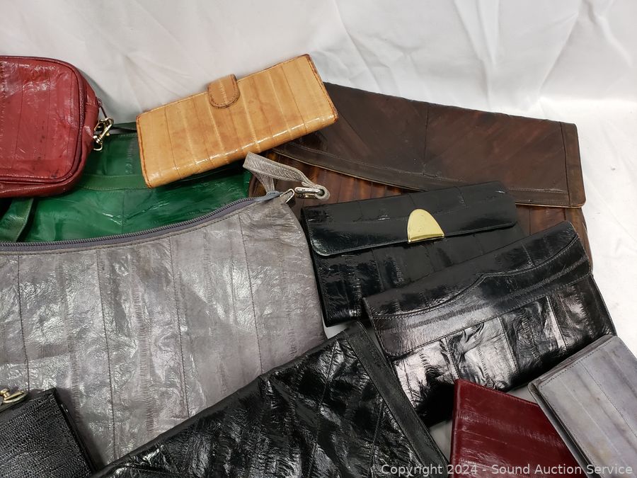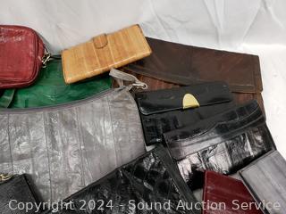 Lot #0140: Assorted Women's Eel Skin Clutches, Purses, Wallets
