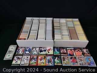 One with football cards has some baseball cards. Refer to photos for examples of lot contents, more details.