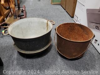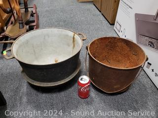 Approx. 8.5" x 11.5" Dia & 9.5" x 14" Dia. Various rust, weathering wear.