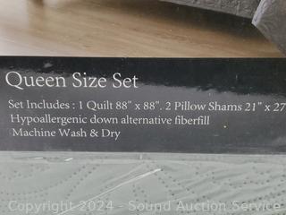 Lot #0054: Grace Elizabeth Gray Down Alternative 3pc Microfiber Quilt Set