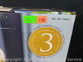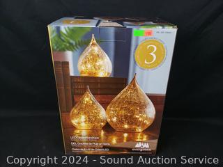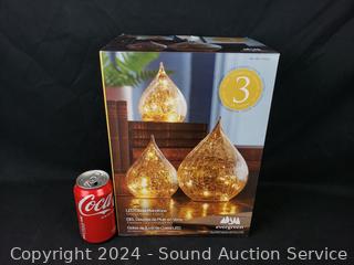 Lot #0255: 3pc Evergreen LED Gold Crackle Glass Raindrop Lights