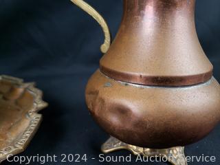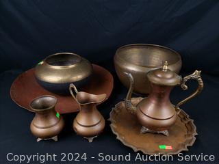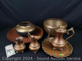Lot #0087: 7pc Vintage Copper & Brass Decor, Tableware