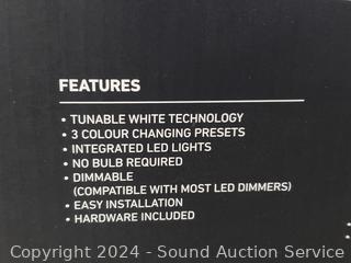 Integrated LED's, 24W, 1560LM, 3000-5000K color. 2.24" x 13.03" Dia. Appears to be functioning as intended. Don't see any issues.