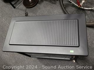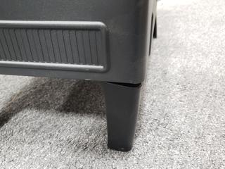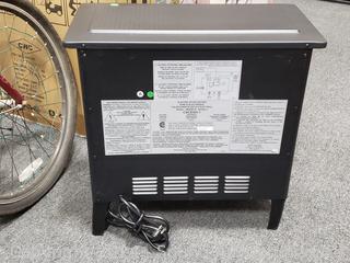 Appears to be functioning as intended. Legs on the left are both missing a mounting screw. Don't see any issues. Approx. 23" H x 24" W x 12.25" D.