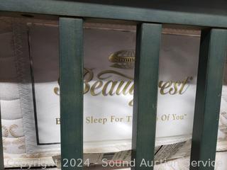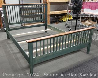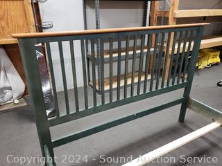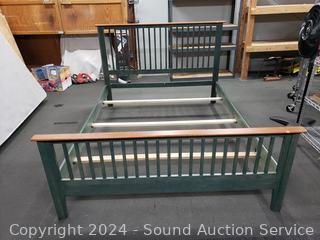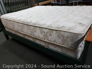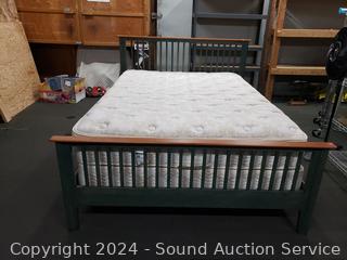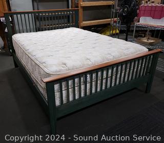 Lot #0037: Green Framed Full/Queen Bed w/Mattress & Boxspring