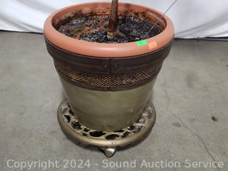 Approx. 54" tall overall, 10" H x 12" Dia plastic pot, with cart.
