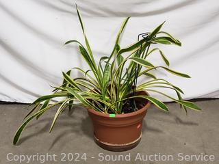 Approx. 22" tall overall, 8" H x 11" Dia. plastic pot.