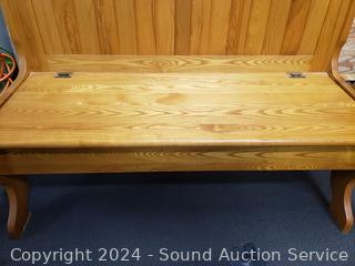 Some scuffs, scratches, overall great condition. 33" H x 48" W x 20.75" D x 17" to seat.