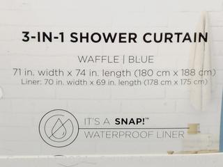 Lot #0301: Original Hookless Blue 3-in-1 Shower Curtain Set