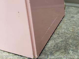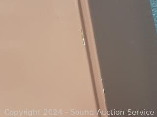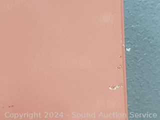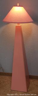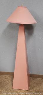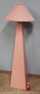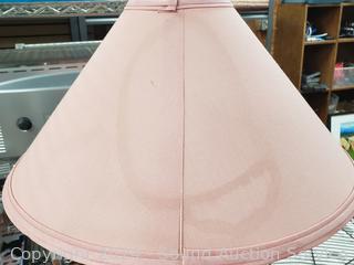 See s cuff on base with some chipped paint, discolored area on shade. Approx. 59" H x 20" Dia. Appears to be functioning as intended.