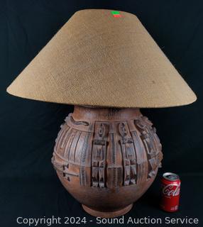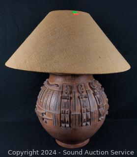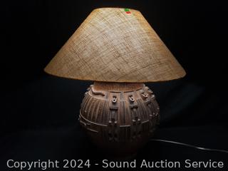 Lot #0058: Pottery Table Lamp w/Fabric Shade