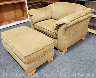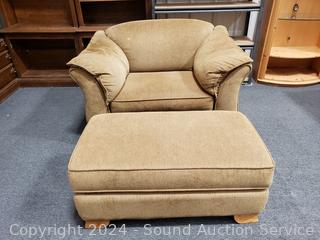 Lot #0002: Ritz Brown Upholstered Easy Chair w/Ottoman
