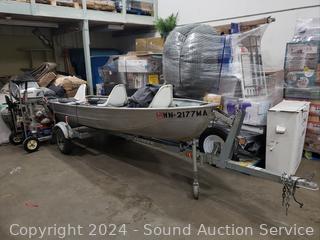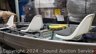 334 Lots including 1982 13.5ft Aluminum Boat w/Trailer, Several Nice Beds, Retro Table, Organ, Pine Hutch, Utility Racks, Ivory Upholstered Sofa & Armchair, Oak Banquet Table, Flat Screen TV's, Barbie Dolls, Crab Pots, Assorted Fashion, Gold & Silver Jewelry, Assorted Cookware, Vtg. Atari Games, Camera, Footwear, Lanterns, Personal Hygiene Products, Dining Tables, Natural Pine Bookshelf, Nice Oak Hutch, Hand Painted Rustic Sawblade, Vtg. Mahogany Buffet, Zinger ZR-10.1 Powered Folding Chair, Crab Pots, Assorted Household Goods, Family Pool, Sprinklers, Portable Air Conditioners, Personal Hygiene Products & More!