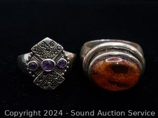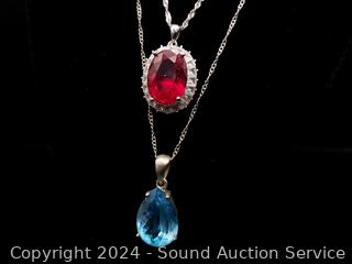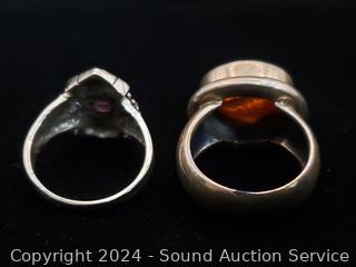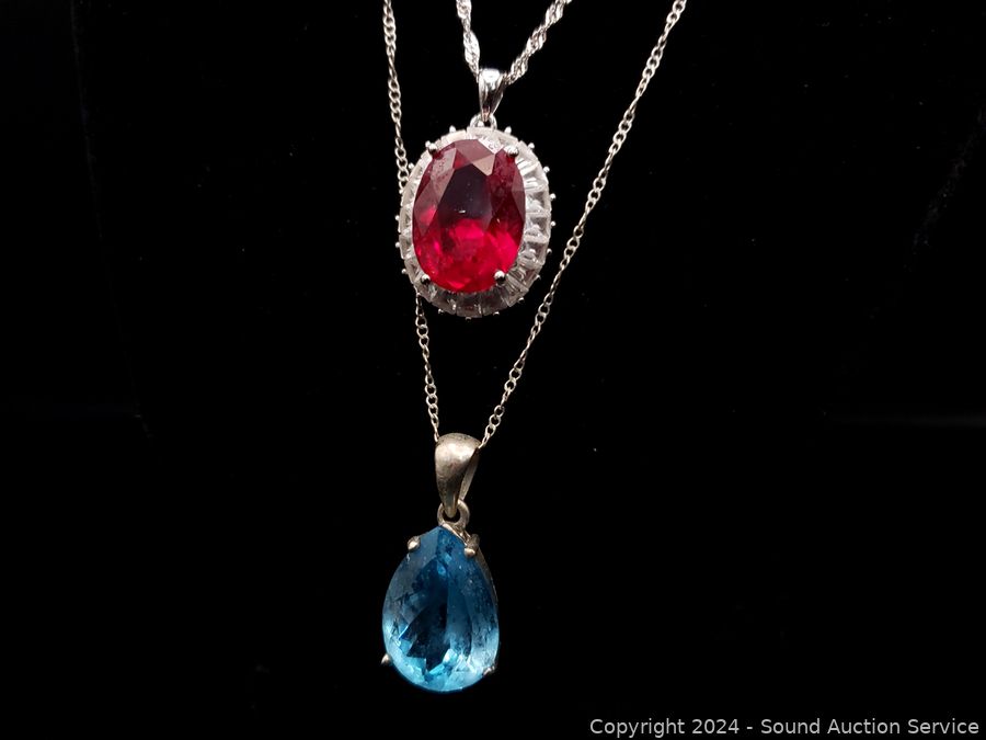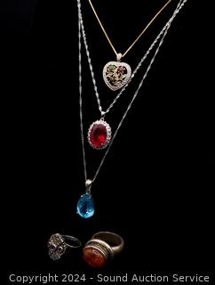 Lot #0118: 2 Sterling Rings S:10 & 3 Chain Necklaces w/Pendants