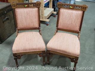Lot #0020: 2 Vintage Victorian Chairs w/Wood Front Casters