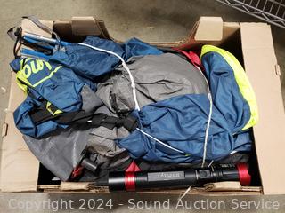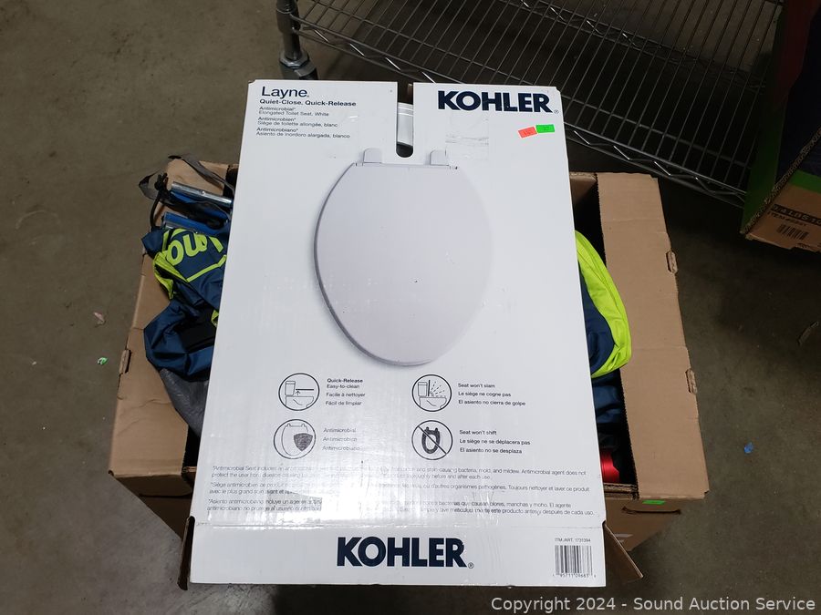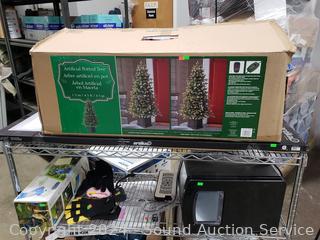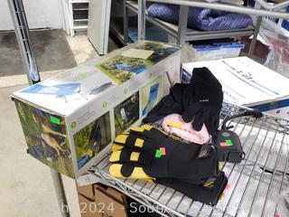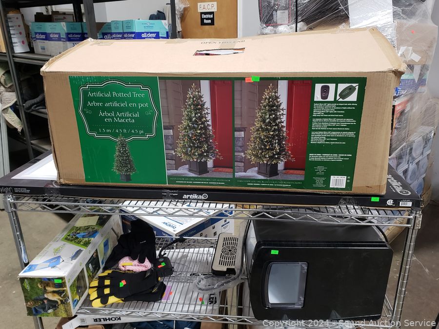 Artificial lighted potted tree (not working), Avanti Countertop ice machine (unknown condition), Cascade packable camp chair (has a broken pole), gloves, feather pillows (a little dingy), Ultra-Thin LED Flat Panel, Elongated Toilet Seat, LED Flashlight & more. Cart NOT included. ATTN: All items are used, may be missing pieces, damaged, not functioning, complete, no issues, etc. All items as is. Refer to photos for more details.