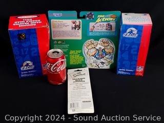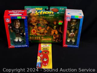 Lot #0227: 2 NFL Bobbleheads, 1999 Brett Favre Figure, Simpsons Talking Beer Opener