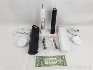2 travel cases, with 4 sealed brush heads & 2 chargers. Both appear to be functioning as intended.