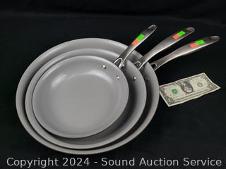 Lot #0322: 3pc Tramontina Hard Anodized Ceramic Non-Stick Skillets