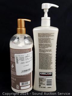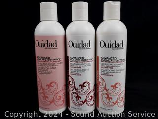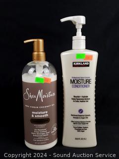 Kirkland Salon Formula Conditioner 33.8oz (full/mostly full), Shea Moisture Coconut Oil Conditioner 34oz (mostly full), Quidad Defrizzing shampoo, Conditioner (1/2 full) & Gel (full/mostly full).