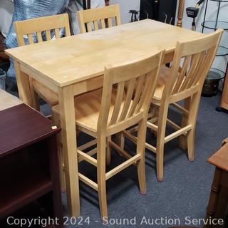 Lot #0006: Apple Furniture Blonde Wood Cafe Table w/4 Chairs